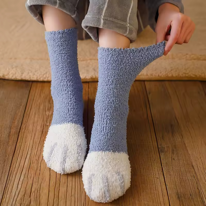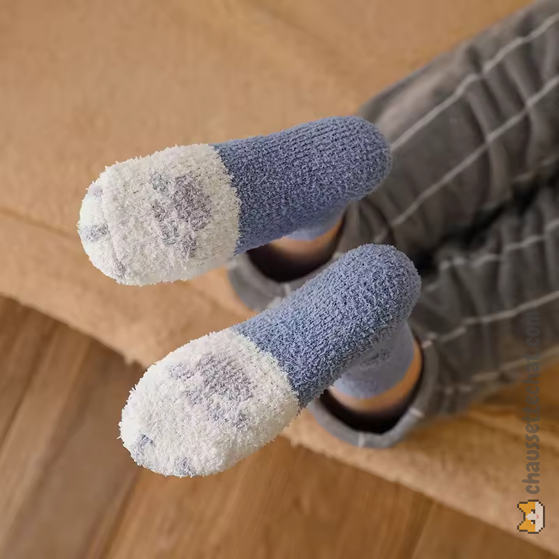 Plus que de simples accessoires de mode, ces chaussettes pattes de chat fluffy sont une véritable invitation au bien-être. Conçues dans une matière pelucheuse ultra-douce, elles enveloppent vos pieds dans un cocon de chaleur, idéal pour affronter les soirées fraîches d’hiver ou pour télétravailler dans un confort absolu. Les motifs coussinets apportent cette touche de fantaisie unique qui transforme vos moments de repos en une expérience ludique et apaisante. Que vous lisiez un livre au coin du feu ou que vous profitiez d’un marathon de séries, leur texture pilou-pilou assure une isolation thermique optimale sans jamais sacrifier le style. C’est l’accessoire homewear indispensable pour celles et ceux qui cherchent à allier l’esthétique « kawaii » à la praticité d’un vêtement de nuit de haute qualité.